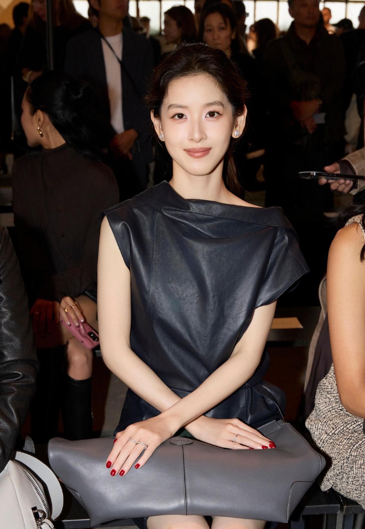 配饰上,她只拿了一个同色系的皮质手包,戴上温柔的珍珠耳钉,看起来低调贵气,把皮质的硬朗和女性的柔美平衡得刚刚好,不同于红毯上的华丽,这套造型更偏向职场大女主的风格,让人看到了她褪去网红标签后,作为商业女性的专业与气场。