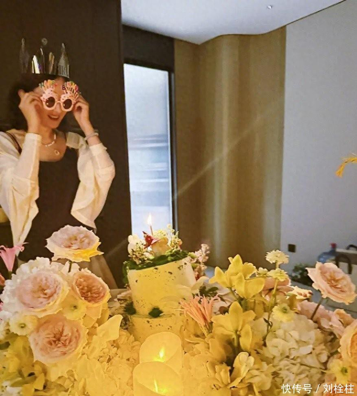 清早翻到她的照片,我第一反应是安静又亮眼的金色10月16日的上午10时16分,她的工作室准时放出了主题写真,名字叫“从花向朵”,像给这一天定了一个不喧闹的仪式淡金色刺绣长裙贴着光,手里捧着虞美人花束,身后是蔷薇花墙和木棉花瓣,画面不浓不艳,干净得像把空气都擦拭过一样工作室解释得很直白——“花”象征她角色的成长,“朵”代表她作为个体的独特性有人在评论里接话“没人规定一朵花必须长成玫瑰或向日葵”到了晚上,她在社交平台又放出一组生活味更重的庆生照桌上堆满花,蛋糕边上蜡烛有点快要掉下来的样子,长寿面就那样热气往上冒,她闭眼许愿那一秒,屋里的灯被她笑容揉得更暖她穿米白色针织衫配黑裙,戴着搞怪眼镜,像把优雅和俏皮硬是装进同一张脸里这个“油画感”不是靠滤镜,是靠安稳她笑的种子没有变,只是被岁月养得更有层次