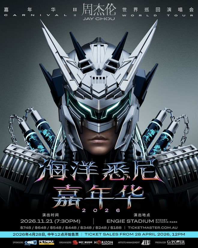 「海洋 悉尼 嘉年华Ⅱ」周杰伦世界巡回演唱会,门票将于 4 月 28 日(星期二)中午 12 点(AEST) 通过官方售票渠道 ticketmaster.com.au 开始售票!