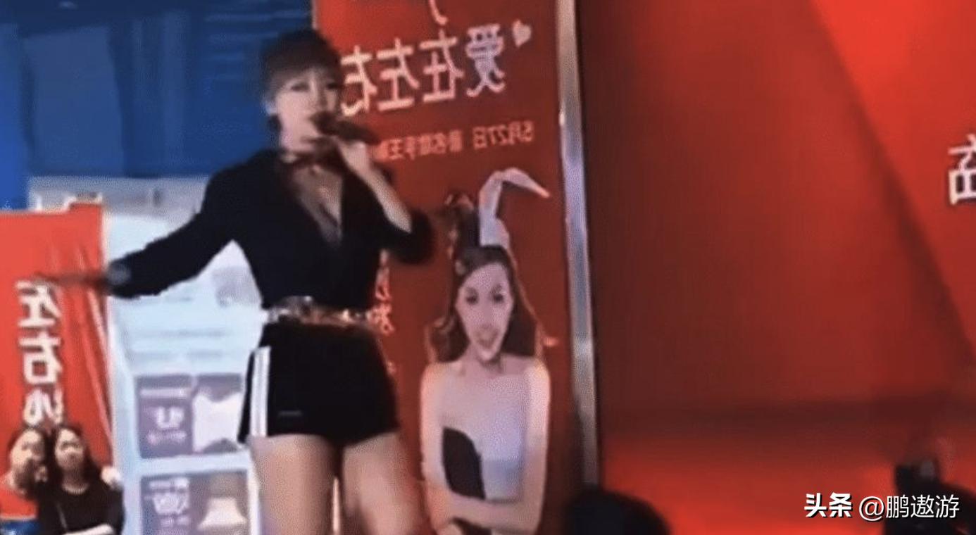 舞台简陋,音响效果普通,她穿着短裤,在台上卖力地唱跳着。