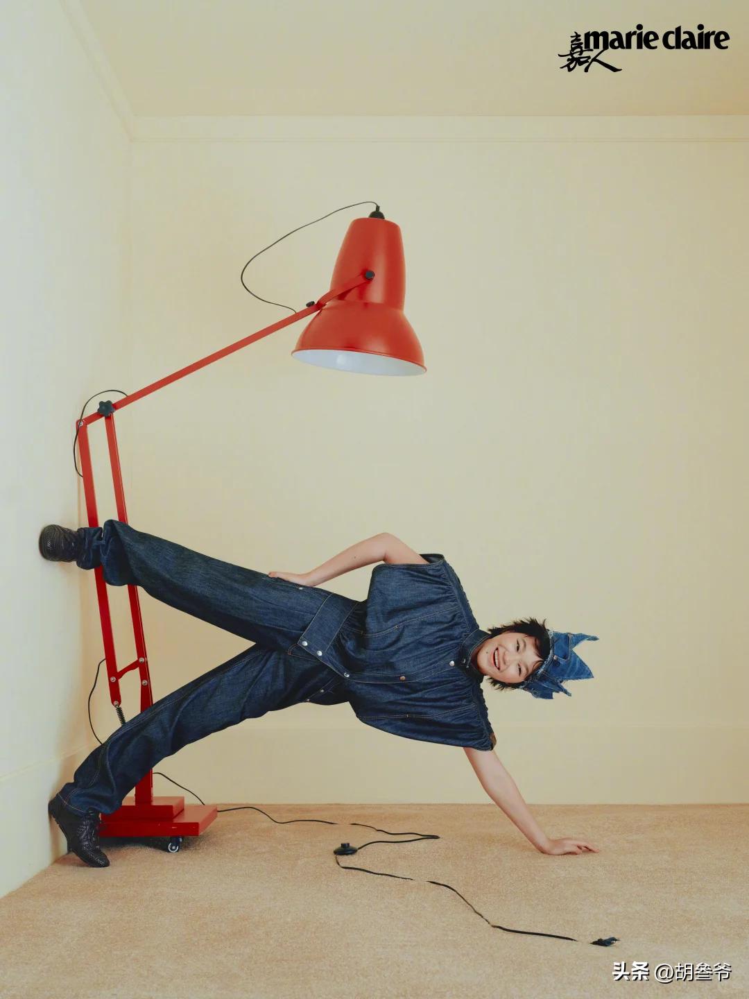 硬朗的金属质感与她清透的裸妆形成强烈反差,拳击辫增添了几分干练,镜头下的她眼神凌厉,微微抿嘴的样子透着一股不服输的韧劲。