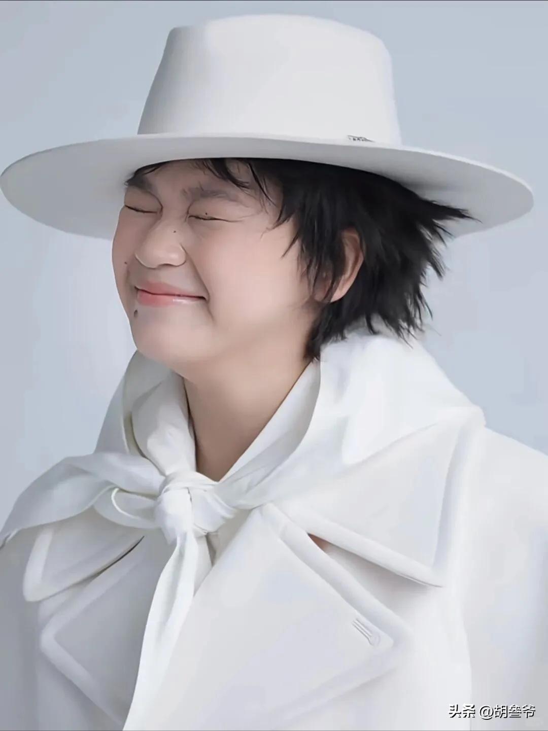 纯白雕塑套装搭配宽檐礼帽,是这组封面中最具氛围感的造型。