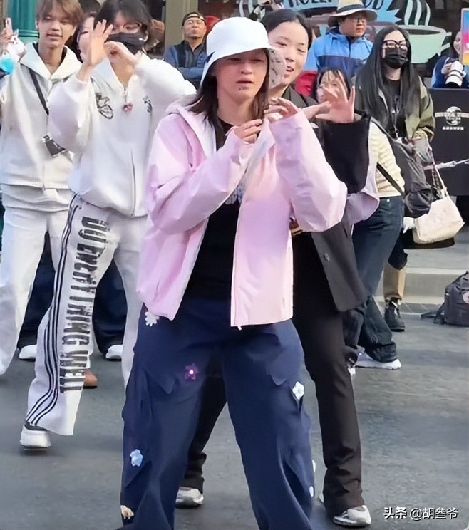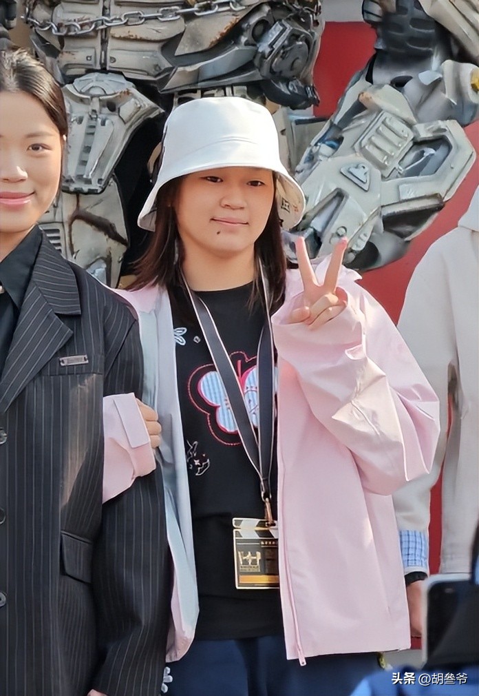 在曝光的画面中,全红婵身穿粉色冲锋衣内搭黑色短袖,宽松牛仔裤配运动鞋。