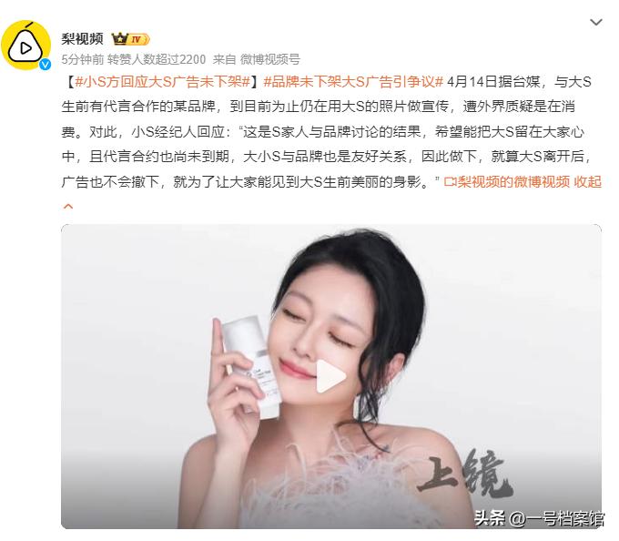 而在这中间他们还表示是希望把大S留在大家心中,广告不撤下就是为了让大家都能见到大S生前美丽的身影。