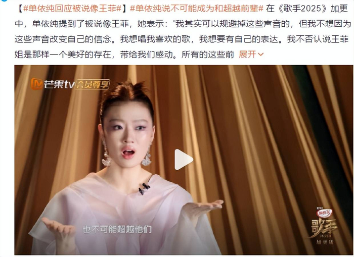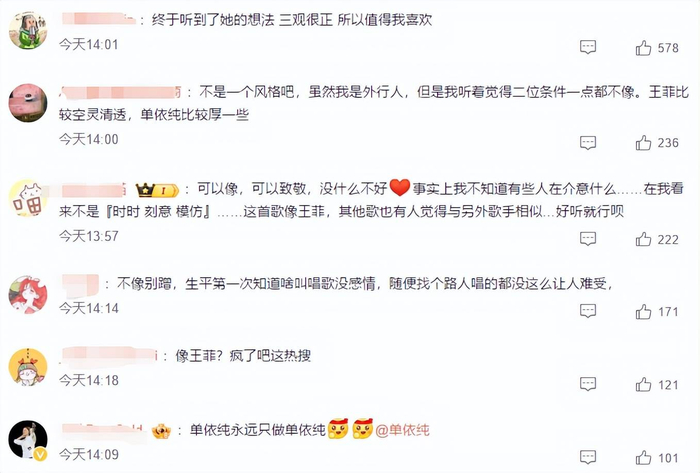 随着这股热潮愈演愈烈,单依纯于5月24日通过微博回应称:“我只是想唱我爱听的歌,保留并传达我的表达方式。”言语之间尽显对王菲的敬意,然而网友们却并不买账:“等火了才想着谦虚?”