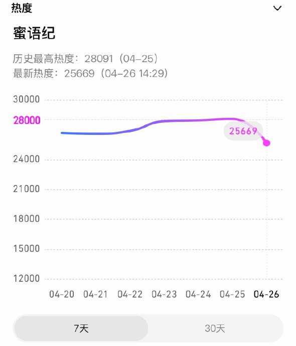 "蜜语纪30.5%"指的是都市剧《蜜语纪》于2026年4月25日创下的单日云合数据市场占有率纪录,这一数据不仅断层领跑同期剧集,更成为2026年第二部单日市占率突破30%的爆款剧,引发行业对"中偶题材复苏"的热议。