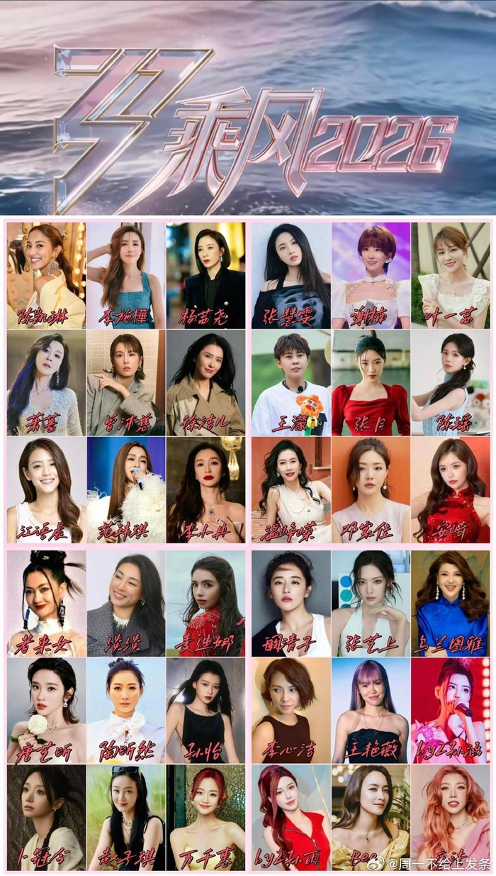 《乘风2026》(即《浪姐7》)于2026年3月27日正式官宣全阵容及赛制,32位姐姐集结亮相,节目首次采用“全程直播无修音+踢馆挑战”模式,引发全网热议。