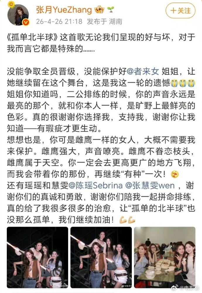 #者来女回复张月##乘风2026# 乘风离别满是温柔,者来女遗憾淘汰,队长张月满心不舍,姐妹情谊格外动人。