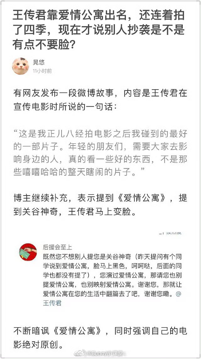 还记得前几年王传君在某次采访中不想别人提关谷神奇这个角色,强调自己的电影是原创,之后更是拒演《爱情公寓》电影版……最近王传君给陈赫新话剧送花篮贺喜,叫他“贤哥”,这是记起来时路了