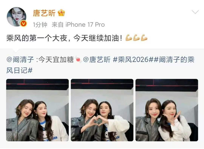 很快,唐艺昕也火速转发回应,一句“乘风的第一个大夜,今天继续加油!”,不仅呼应了阚清子的动态,更让这份互动充满了默契与温暖。网友们纷纷感叹“美女贴贴太好嗑了”,“浪姐这季售后直接封神”,更有不少人翻出了两人早年的合照,才发现她们的友情已经走过了近十个年头。