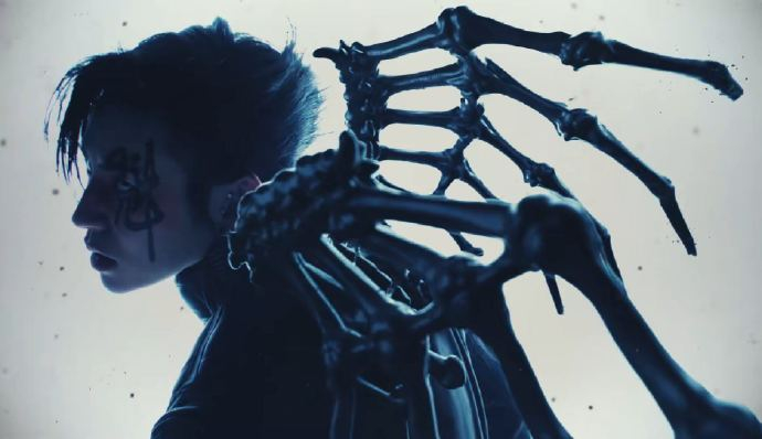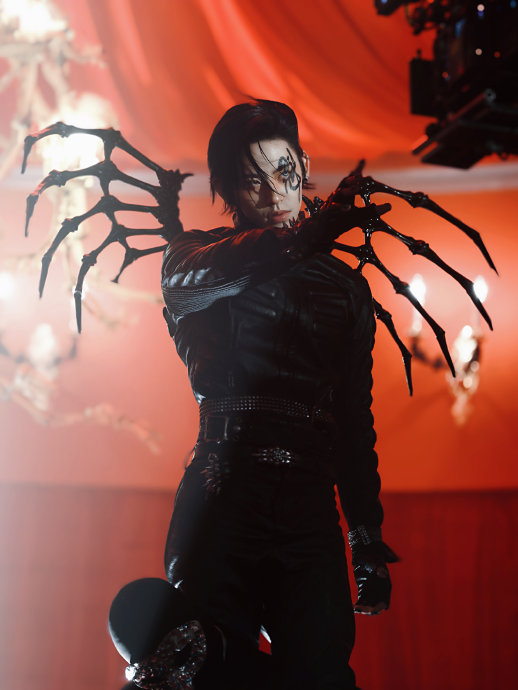 MV以哥特式暗黑美学为基调,穿插朋克铆钉、泼墨元素与科幻光影,构建出充满张力的超现实叙事空间。10套造型如破碎铠甲、荆棘玫瑰、金属面具,化身“带刺盔甲包裹叛逆灵魂”的符号化表达。每一帧画面都经精密计算:主角立于铺满佳肴的餐桌中央,被众人审视切割,隐喻舆论场的暴力解构;结尾撕裂上衣露出背部“箭孔”,光束穿透躯干射向观众,完成“伤痕-光路-共鸣”的哲学转化。这种将痛苦升华为艺术暴力的手法,被乐评人誉为“将娱乐圈泥泞锻造成钻石”的先锋实验。