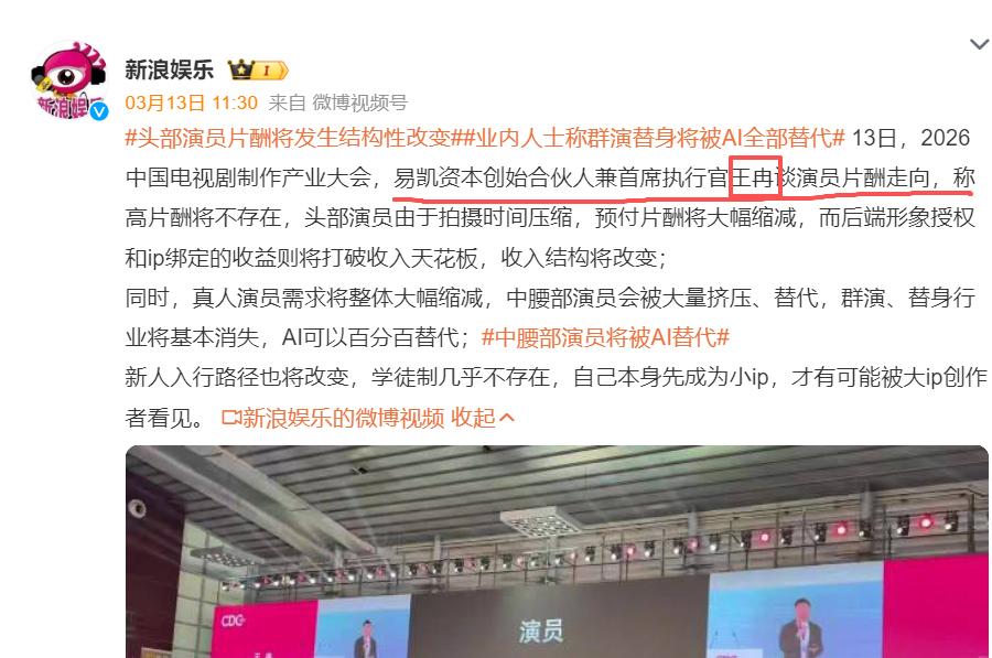 今年3月13日,中国电视剧制作产业大会上,有一场关于AI重塑影视行业的演讲。