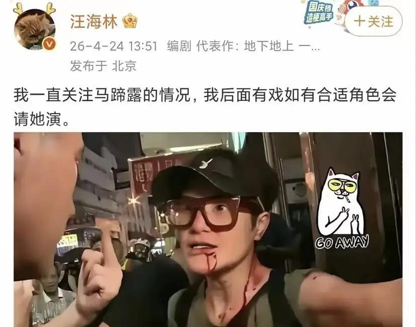 他说自己一直在关注马蹄露的事,后续有合适的角色会请她演。