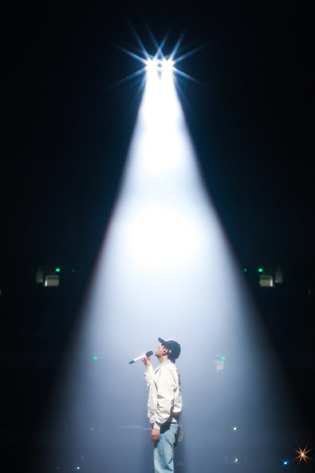 当《月亮妈妈》的旋律流淌,近万名歌迷倏然举起统一设计的蓝色手幅——"生日快乐""感谢相遇"等荧光字样在黑暗中连成一片涌动的星海。这片由歌迷自发组织、提前数月秘密筹备的视觉奇观,瞬间将场馆染成象征辽阔与深情的蓝色宇宙。面对突如其来的震撼,台上的海来阿木数次哽咽凝噎,躬身致谢时坦言:"这蓝色星海,是我收过最贵的生日礼物"。手幅的蓝色不仅呼应其代表作《你的万水千山》中的山水意象,更以"见一面"字样紧扣巡演主题,将歌迷的奔赴升华为生命的仪式。