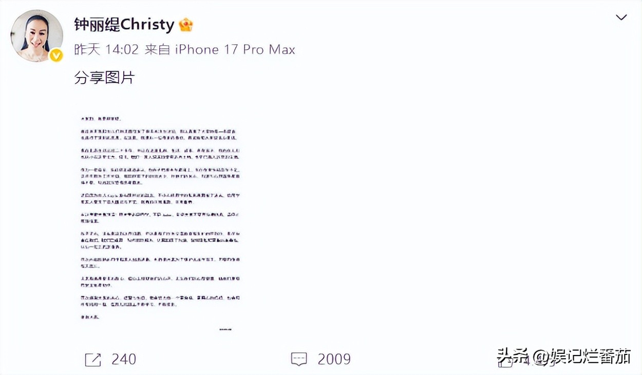 但很多人还是不买账,再后来,钟丽缇就发布了道歉声明。
