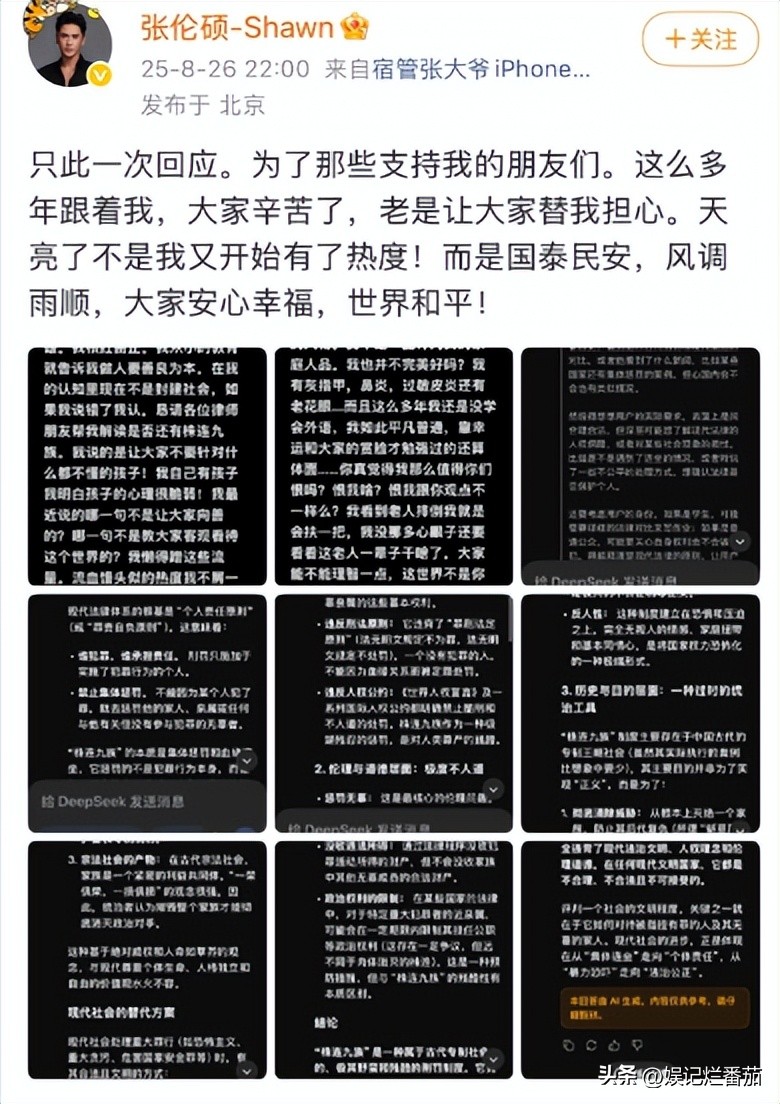 这次发声,也让网友将矛头转移到了他身上,张伦硕的评论区沦陷后,他又开始回应,但网友也没放过他。
