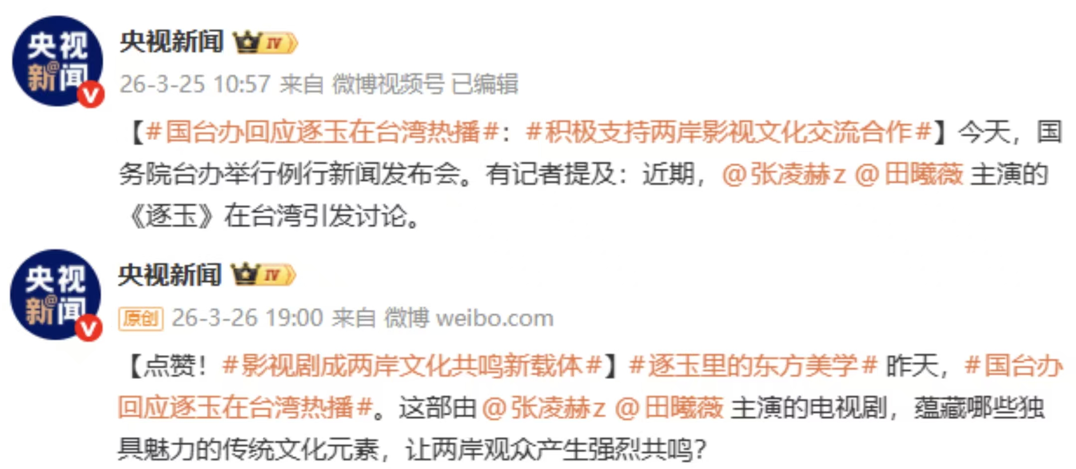 而央视与国台办,认可的是《逐玉》在传播传统文化、连接两岸情感上的积极意义,两部官方发声,一个敲警钟,一个给肯定,恰恰让这部剧和张凌赫本人的争议,变得立体而深刻。