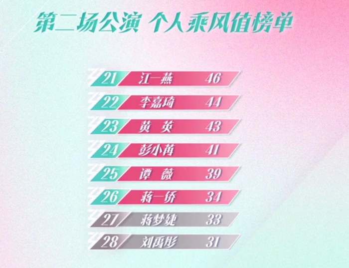随着比赛的结束,第二次公演喜爱度排名也随之发布,结果几家欢喜几家愁。