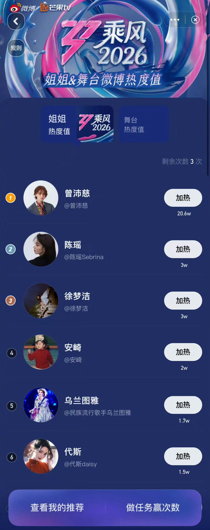 #曾沛慈 断层第一#恭喜曾沛慈微博姐姐热度值断层第一,热度值突破20W,《一个人想着一个人》神级舞台真的太权威了