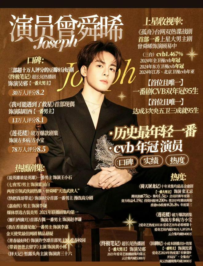 目前遇到这个瓶颈期,也是有点时运不济,如果不是“解约”的事,他大概和成毅类似,在新武侠男频赛道里一直打转,哪怕古偶也是可以拿到1番的角色。
