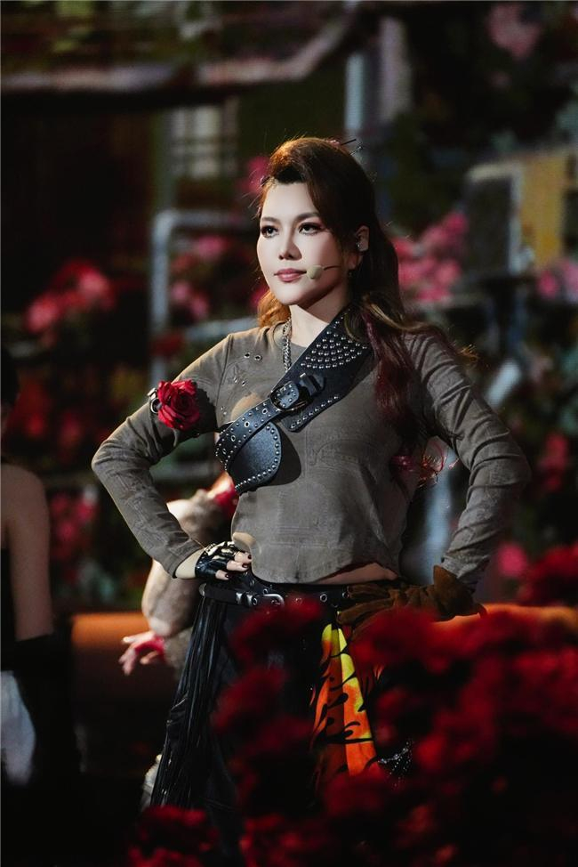 本次一公舞台,乌兰图雅以一身酷飒摇滚造型惊艳亮相,搭配个性配饰,摇滚感拉满的穿搭一出场就牢牢抓住全场目光。
