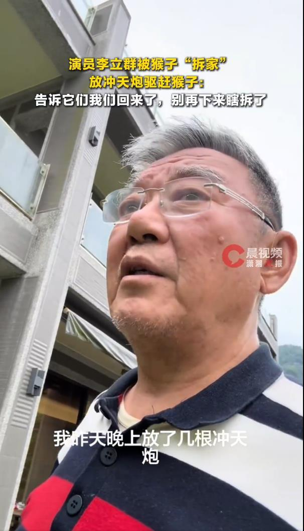 李立群在视频中详细讲述了这场“人猴交锋”。由于他长期不在山间住所,猴子们便频繁闯入,将他家凉亭的竹子拆毁,导致设施遭到严重破坏。面对这群“不速之客”,李立群没有选择过激手段,而是点燃了一支冲天炮,并隔空向猴群喊话:“告诉它们我们回来了,别再下来瞎拆了!”试图用声响进行威慑,防止破坏继续。他还透露,自己此前已多次与猴子“斗智斗勇”,这次算是针对性警告。