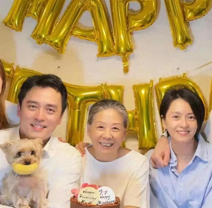 这次庆生照里,梁妈妈也出镜了。 她双手捧着生日蛋糕,端坐在双胞胎儿女中间,面带微笑,神情特别慈祥。