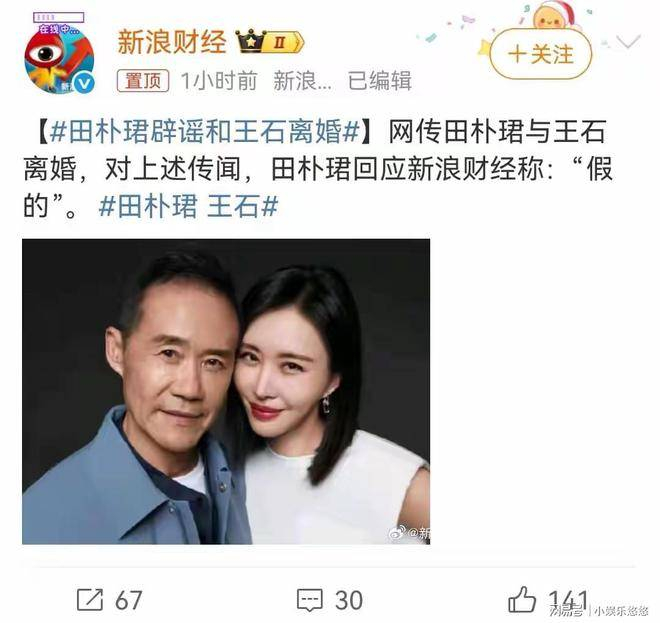 于是,谣言迅速传播,越传越离谱,甚至有说法称王石成了被抛弃的小老头,而田朴珺则成了名利双收的大赢家。实际上,这一切只是网友的无根据猜测。田朴珺和王石的婚姻并没有任何问题。事实上,前不久,田朴珺在采访胡歌时,提到和胡歌一起爬山时还提到了王石,称他为老王,并且表示夫妻感情依然非常好。