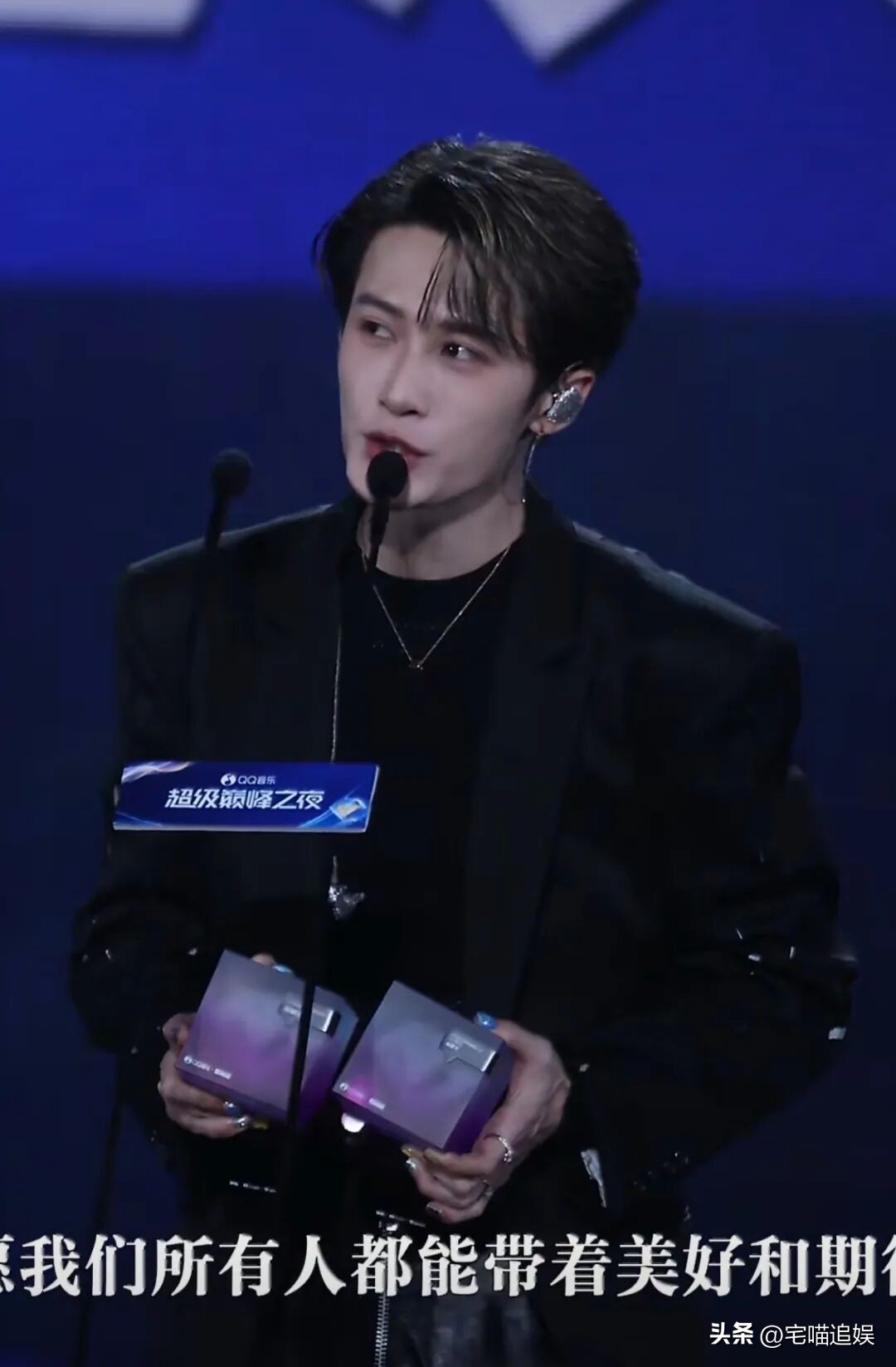 在拿起两块奖杯,再次夺得“全能艺人”和“巅峰歌手”两大奖项时,他坦诚发言:“接下来的路还很长,让我们所有人带着美好和期待勇敢地走下去!”