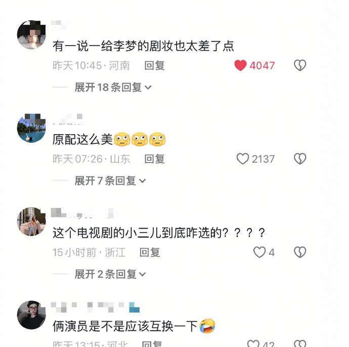 争议蔓延至女配角李梦的妆造对比。部分观众指出: