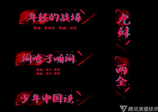 此外在直播视频歌名条的设计上也相当的巧妙,字体上采用手写体形式,色彩上红色吻合演唱会主视觉的色彩基调,背后重叠的蓝色字体在丰富层次感加强对比的同时,也是张杰歌迷的应援色。细节上运用许多分子颗粒的形式也是遵循主视觉中消散的视觉语言。整体上与主体视觉相吻合,同时设计也具有强烈的科技感与未来感。