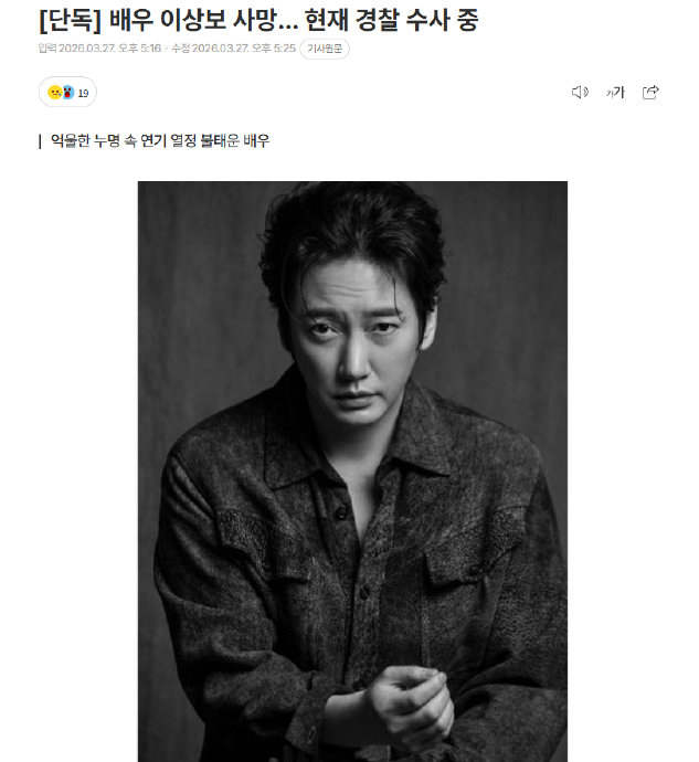 2026年3月26日,韩国演员李相宝(이상보)被发现在家中去世,享年45岁。警方已介入调查具体死因,但尚未公布结论。他的离世令韩国影视圈陷入悲痛,尤其令人扼腕的是,他生前正处于事业重启的关键阶段: