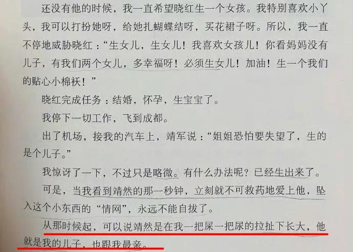 而刘晓庆呢,在书中是这样写的,“他就是我的儿子,也跟我最亲。”