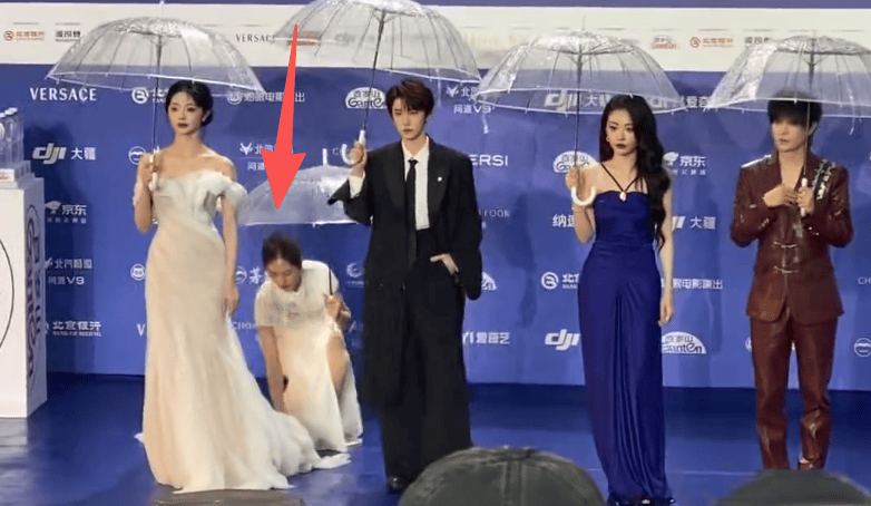 北京这场雨也显出明星百态,有的明星给别人打伞,自己淋湿,还有的女明星为了自己的造型,让别人打伞,整理裙子,好几个人伺候。