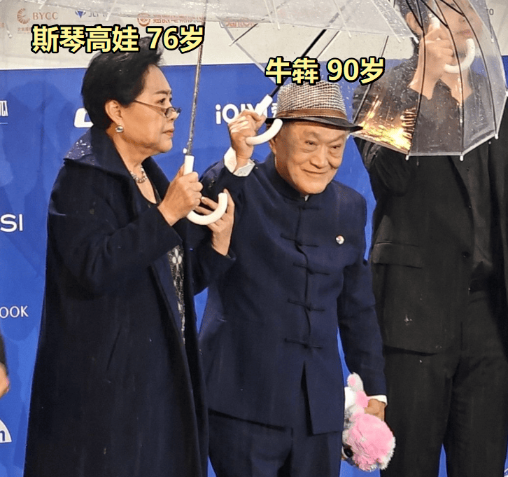 相比之下,另一边的老戏骨只能互相搀扶,就没有一个工作人员帮忙。