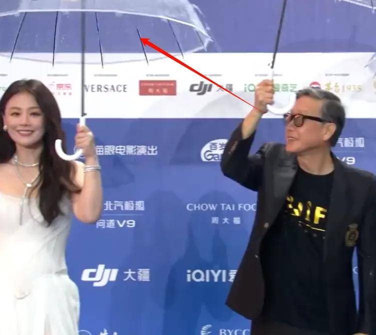 但有的人打伞似乎只关注自己,逼得旁边的制片人、编剧应萝佳雨伞都斜着打了,后来更是直接把自己的伞放到了身后,但两边的人似乎都无动于衷,