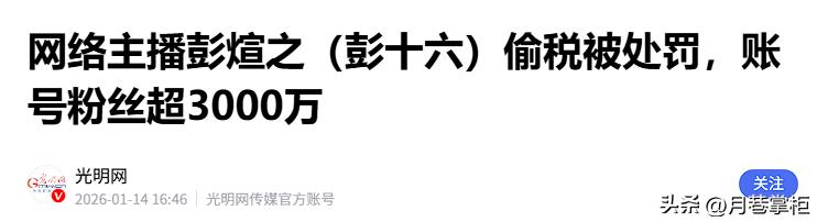 **吃瓜简评:顶流网红彭十六偷税被查,罚款415万,掉粉12万还不算完** ,姐妹们!这波事儿真是揪心又好笑!顶流网红彭十六,光光是网红界的“巨无霸”,粉丝数更多于某些明星的总和,随便一个广告都能进账55万,年收入简直不要太离谱!然而呢?这位“白月光”倒是把“偷税漏税”玩得溜溜core,结果惹得连税务大哥都翻脸了,处罚力度简直过核!这事儿,堪称“网红界的教训大课堂”! ,### **偷税漏税:一场“白月光”狂欢的终结** ,说到彭十六,这位姐姐可是网红圈的“老字号”,早年凭借古风变装,视频一出,全网疯狂追捧,粉丝量直接飙升到300万+,视频点赞量也经常稳定在百万级别!商业价值?放眼全网,简直是“无敌”级别!广告报价高到让人窒息,线下演出、音乐创作、品牌合作,年收入直接数千万,简直就是“印钞机”光速运转! ,然而呢?这位“白月光”在纳税这块儿,可真是“把握不好",按照重庆税务部门的数据,2021年到2023年,彭十六自行申报的税费加起来才160万,光2022年就只有11.05万!这笔钱,简直比她一个广告的报价还少一半!更可怜的是,单单一周接的广告收入,就能到达160万税费总额,税务部门一查,就直接触发了税收大数据的预警。 ,### **“偷税漏税”:一场“遮羞布”大戏** ,为了在税务这场“生死对决”中脱身,彭十六可谓是下了不少功夫,她注册了一家名叫“彭煊商务信息咨询”的个体工商户,名义上是用来核算她的广告收入,但实际上却成了她偷逃税款的“遮羞布”,这家公司从来没有正经员工,更别说规范的财务和账簿了,资金收付也毫无章法,简直就是一场“乱七八糟”的财务闹剧。 ,更绝的是,彭十六还玩起了“虚开支出”的把戏,在2021年申报经营所得时,她虚列了96万元的成本支出,可当税务部门要求提供相关凭证和发票时,她却拿不出任何东西,甚至连这笔钱具体用在哪儿,她都说不清白,明摆着是在造假,想少缴税款。 ,除了虚开支出,彭十六还玩起了“私账收款”的游戏,线下商演、音乐创作等收入的劳务报酬,她从不让对方公对公转账,而是直接打入自己的私人银行卡,三年间,她通过这种方式收款总共905万元,其中540万元根本没申报纳税,这些私人账户的交易明细,足有上万条,税务工作人员为了核对这些数据,花了好几个月的时间。 ,### **税务调查:一场“铁证如山”的大戏** ,一开始,彭十六还心存侥幸,觉得自己藏得很好,随着调查深入,越来越多的“铁证”被扒出来,面对铁证如山的证据链,彭十六一开始还拒不承认,直到被迫低头认罪。 ,然而呢?这位“天使”偷税的行为,远不止于“少报收入”那么简单,根据官方披露,彭十六早在2019年10月就注册了这家个体工商户,名义上是核算广告收入,实质上却成了她偷逃税款的“替身”。 ,### **处罚与惩戒:一场“杀鸡儆猴”大戏** ,税务部门在2026年1月正式曝光此事,此时的彭十六,已经触发了税收大数据的红线,税务部门也掌握了足够的证据,2025年11月,税务部门就已经下了处罚决定,但直到2026年才正式公布。 ,根据处罚公告,彭十六因少缴税费216.32万元,被依法追缴税款,外加收滞纳金并处罚款,合计高达415.05万元,彭十六已经将这笔钱全部缴清入库。 ,然而呢?处罚的背后,更是一场“杀鸡儆猴”的大戏,彭十六的账号在多个平台被封禁,抖音平台更是掉粉了12.8万,且还在持续下滑,对于网红来说,账号就是生命,掉粉禁言意味着商业价值暴跌,变现能力直接下降。 ,### **教训与反思:网红们别以为自己是“白月光”** ,这场“偷税被查”的闹剧,简直就是网红圈的“惊心动魄”大戏,彭十六年入千万,却因为偷税漏税,整个人栽了个大雷,其实呢?这位姐姐的下场,根本不值得怜悯,年入千万的她,明明有能力合法纳税,却偏偏选择了走捷径,抱着侥幸心理,觉得自己是顶流就可以钻法律的空子。 ,然而呢?税务红线任何人都不能触碰,不管你是顶流网红,还是普通小白,都是如此,这场交易,既是对彭十六的警告,也是对整个网红圈的提醒。 ,### **偷税漏税的代价** ,说到底,这场“偷税被查”的闹剧,不仅仅是一位网红的个人悲剧,更是整个网红圈的一次警示,流量再大,也不能凌驾于法律之上;收入再高,也不能忘记自己的公民义务,希望所有网红都能从彭十六这场事中学到教训,主动依法纳税,守住法律底线。 ,你才能在这个行业里长久发展,才能真正赢得网友的尊重,否则?就像彭十六那样,终有一天,你也会栽得像只白菜似的,掉粉、禁言、倾家荡产,真是“惨不忍睹”! ,**吃瓜完毕!**