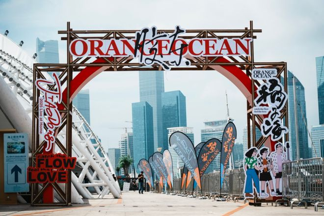 夏末秋初,夕阳将海面渲染成一片粼粼橘光,乐迷们在海风与期待中等待约定时刻的到来。演出特别安排在落日时分,随着17:55日落之时的倒计时,这场属于海市浪漫的限定演出准时启幕。当第一个音符与落日同时降临,整片海岸瞬间被橘色的浪漫笼罩,随着演出进行,夕阳缓缓沉入海湾,观众们身处其中,仿佛像是真的进入了《夏日漱石》riff中那充满放松与惬意的氛围里,那一刻音乐融入了海浪拍岸的节奏,从日落之前,到日落之时,再到夜幕降临,构成了“橘子海”最完整的样貌。