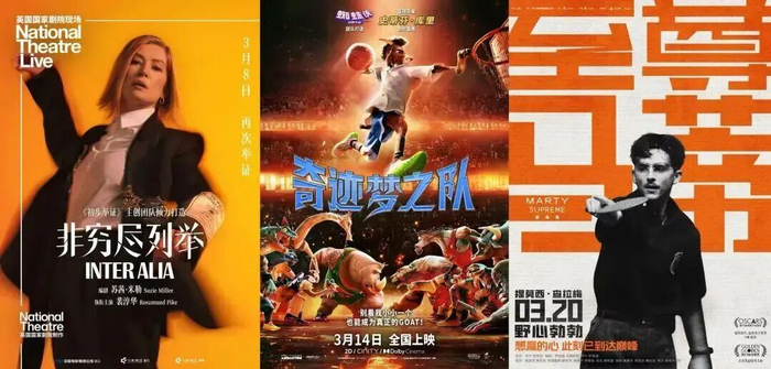 3月20日与北美同步上映的科幻电影《挽救计划》讲述太阳面临危机,一名宇航员在浩瀚宇宙中与外星伙伴携手拯救地球的故事。动画电影《河狸变身计划》则以新颖设定吸引关注,影片讲述了一个人类女孩将自己的意识注入一只机器河狸体内,从而潜入动物社群内部,以人类视角展开充满意外与温情的冒险。此外,《非穷尽列举》《至尊马蒂》《奇迹梦之队》等影片同样备受关注。