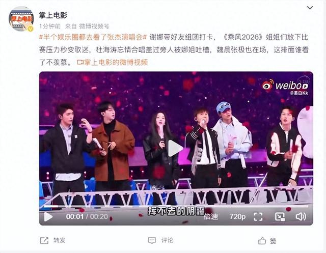 前几天张杰在鸟巢开唱,台下坐的那叫一个星光璀璨。何炅、谢娜、李维嘉坐一排,宋茜、佟丽娅、罗云熙也在人群里挥舞荧光棒。连影帝梁家辉都悄悄送了个花篮,落款写的是“老歌迷和新歌迷”。更绝的是,台下的奥运冠军徐梦桃、范可新、贾一凡跟着节奏蹦得比谁都欢。连谢娜都带着“浪姐团”集体打卡,李小冉虽然人没到,也发文送祝福。不知道的还以为鸟巢开了个明星签到处。