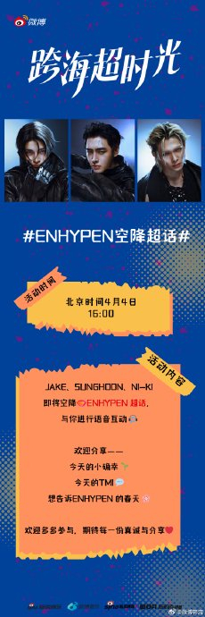 时间卡点:活动选在专辑正式发行前一日(1月15日),通过成员翻牌制造悬念,带动预售热度。当日粉丝需同时带话题 #ENHYPEN空降超话# 发帖,确保内容精准关联宣传目标。