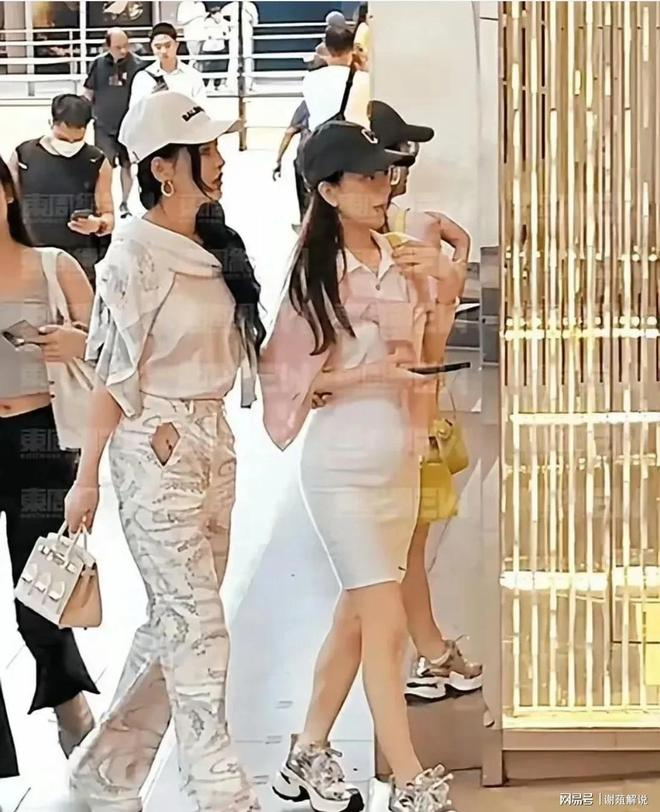 看她怀孕后,和朋友逛街时的路人照,看得出来,她除了肚子大一点,四肢仍然纤细,脸也没啥变化。