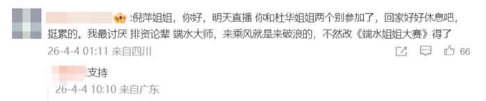 “竞技场变成人情场了。”“倪萍老师还是别主持这节目了。”“一会改规则一会要重唱,能不能把倪萍淘汰了。”这期节目播出后,倪萍的评论区涌入大量吐槽,网友直指倪萍行为失当,《乘风2026》是一档舞台竞技类综艺节目,公平和实力是节目的看点,倪萍的 "端水" 行为被认为是用个人温情与资历特权,践踏了其他选手日夜苦练的汗水。有网友尖锐评论: "如果实力不如人情,那比赛的意义何在?"不过也有部分网友持体谅态度,认为五小时的高强度直播对倪萍的体力、精力消耗量巨大,出现失误可以理解,且她次日道歉的态度非常诚恳,直接承认错误,这份勇气和担当值得被原谅。