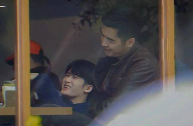 在餐厅的那场戏份中,沈翊调皮地给杜城画了一个胡子,没想到戏外两人互动更加有趣。从这个角度来看,檀健次几乎是斜躺在金世佳的怀里,笑得一脸可爱。金世佳则歪着头,露出几分痞帅痞帅的笑容。