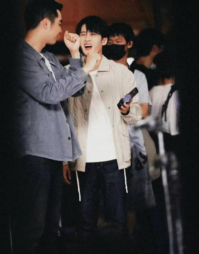 成果出来后,檀健次拿着手机的相片给金世佳看,笑得像个稚气未脱的孩子,金世佳则手握拳头,佯装生气模样,两人这一出互动更像是上演了“他在笑,他在闹”的情节。