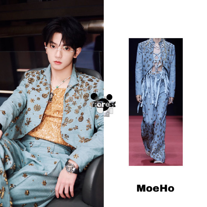 在TF家族新年音乐会、微博之夜等正式场合的佩戴,使其成为舞台造型固定元素。如2026年微博之夜搭配珍珠项链的叠戴造型,被时尚媒体解读为“将工业符号转化为矜贵美学”,体现新生代偶像对传统偶像符号的重构。