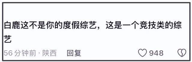 白鹿对李晨和郑恺的这段形容很快在网上发酵,相关视频的评论区纷纷沦陷,大家不理解摆烂的人有什么资格嘲讽认真的人。明明是竞技类综艺,白鹿是不是当成了度假综艺,自己不认真就算了,还用这样高高在上的语气调侃认真的人,实在让人愤慨。