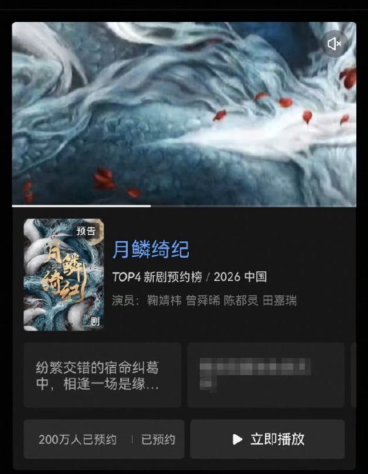 - 播出反响热烈:《月鳞绮纪》开播4天即冲入年度剧集畅销榜前20,优酷预约量突破200万,相关二创视频10小时破百万点赞,印证了“鞠陈CP”的吸睛能力。