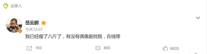 4月6日,相声演员岳云鹏的一条微博,直接把自己送上了热搜。他发文自曝“已经瘦了八斤了”,并延续一贯的幽默风格,在线喊话:“有没有偶像剧找我,在线等”。这波操作瞬间引爆网络,让公众的焦点从他减重本身,迅速转向对其外形变化与事业转型可能性的热烈讨论。