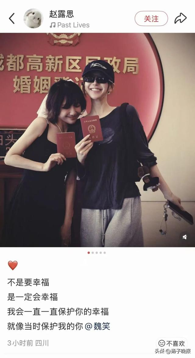 4月25日,多名网友爆料,演员魏笑已于当日在成都高新区民政局与男友登记领证结婚,其好友赵露思全程陪同见证。消息随即引发关注。